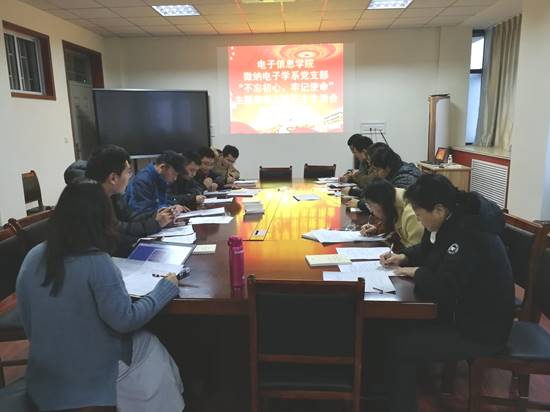 12月17日下午,電子信息學(xué)院微納電子學(xué)系黨支部“不忘初心、牢記使命”主題教育專題組織生活會(huì)和開展民主評(píng)議黨員工作在誠(chéng)思樓407會(huì)議室召開。支部書記王彬主持會(huì)議,學(xué)院黨委委員、院長(zhǎng)助理宿杰及支部全體黨員參加會(huì)議。
