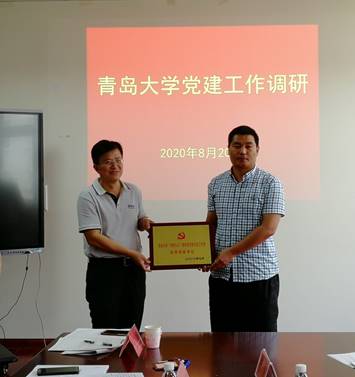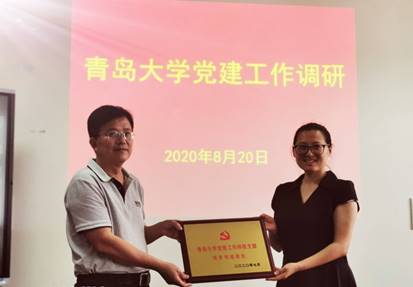 會上,徐龍飛向微納電子學系黨支部書記工作室授牌“青島大學‘雙帶頭人’教師黨支部書記工作室培育創建單位”,向學生黨支部授牌“青島大學黨建工作樣板支部培育創建單位”。