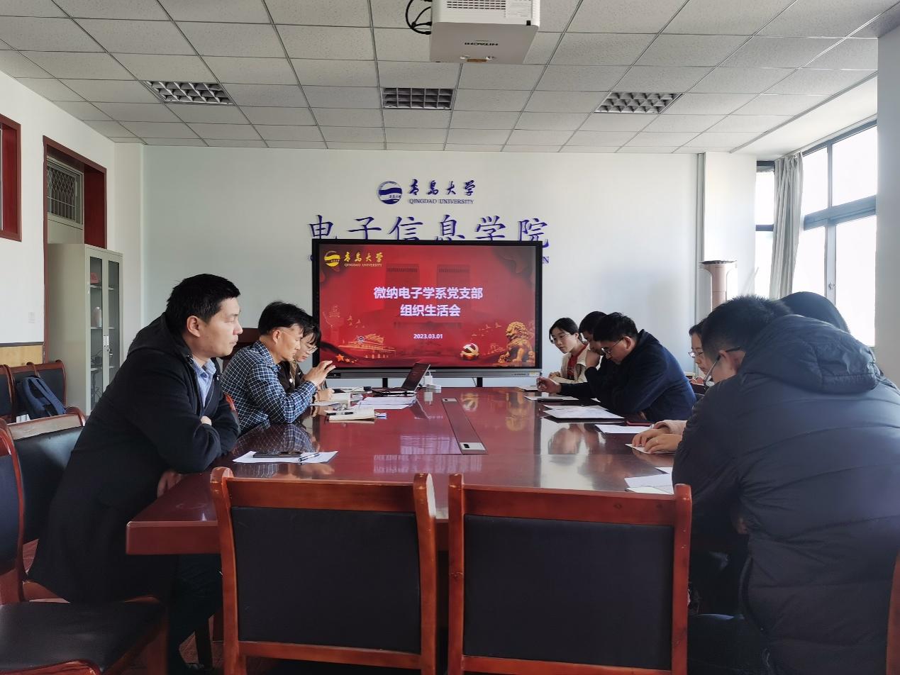 3月1日下午,微納電子學系黨支部在誠思樓407會議室召開2022年度組織生活會,會議由黨支部副書記曹明惠主持,黨支部書記姚釗線上參會,學院黨委書記張啟春出席會議,微納電子學系支部黨員參加會議。