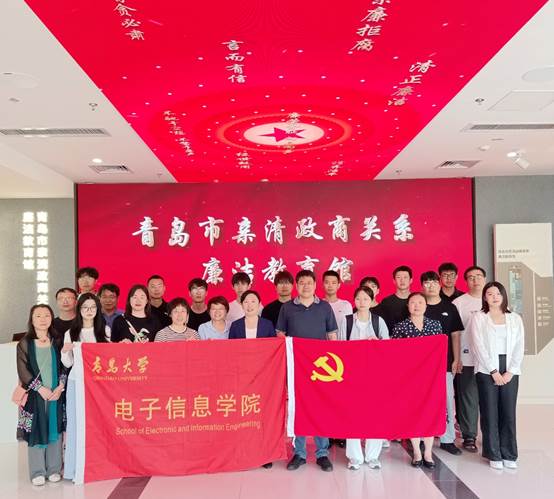 為深入貫徹習近平總書記關于加強黨的作風建設的重要論述,扎實推進學校深入貫徹中央八項規定精神學習教育,6月12日下午,我院通信工程系教工黨支部前往青島親清政商關系廉潔教育館開展現場學習活動。學院黨委書記孫麗娜、院長李山東,通信工程系黨支部書記許麗艷等教師黨員以及學生黨員代表共同參與了此次活動。