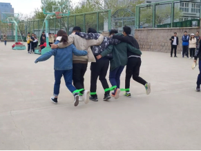 經(jīng)過了一個中午的休整,同學們又開始了下午的比賽。第一項是傳呼啦圈和“仙人指路”,參賽的同學們手拉著手傳遞呼啦圈,傳遞后緊接著一名同學轉(zhuǎn)十圈蒙眼背著另一名同學,被背的同學發(fā)出指令指揮另一名同學按照規(guī)定路線走到終點。由于看不見路線,參賽的同學們走出的路線千奇百怪,也給大家?guī)聿簧贇g樂。