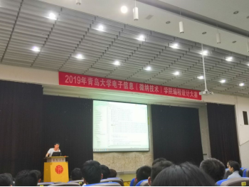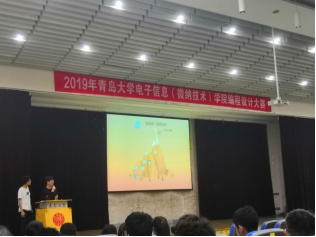 七支隊(duì)伍按照順序依次上臺展示了他們精心設(shè)計的作品。他們借助自己制作的PPT和視頻,用科學(xué)嚴(yán)謹(jǐn)?shù)膶I(yè)知識向大家講解了他們作品的設(shè)計理念和初衷。能看出來每一組選手都對編程十分的熱愛,圍繞"愛國、愛校、愛青春"的主題,表達(dá)他們對國家、校園和青春的感情。