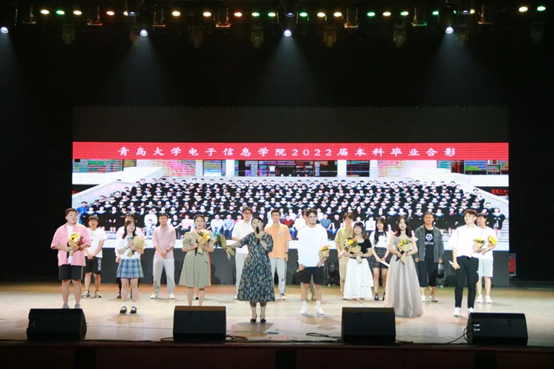 6月8日晚,我院在青大劇院成功舉辦了2022屆“E夢星辰,再續華章”畢業晚會。學院黨政領導、各系主任、教師代表、以及各年級輔導員和2022屆全體畢業生參加晚會。