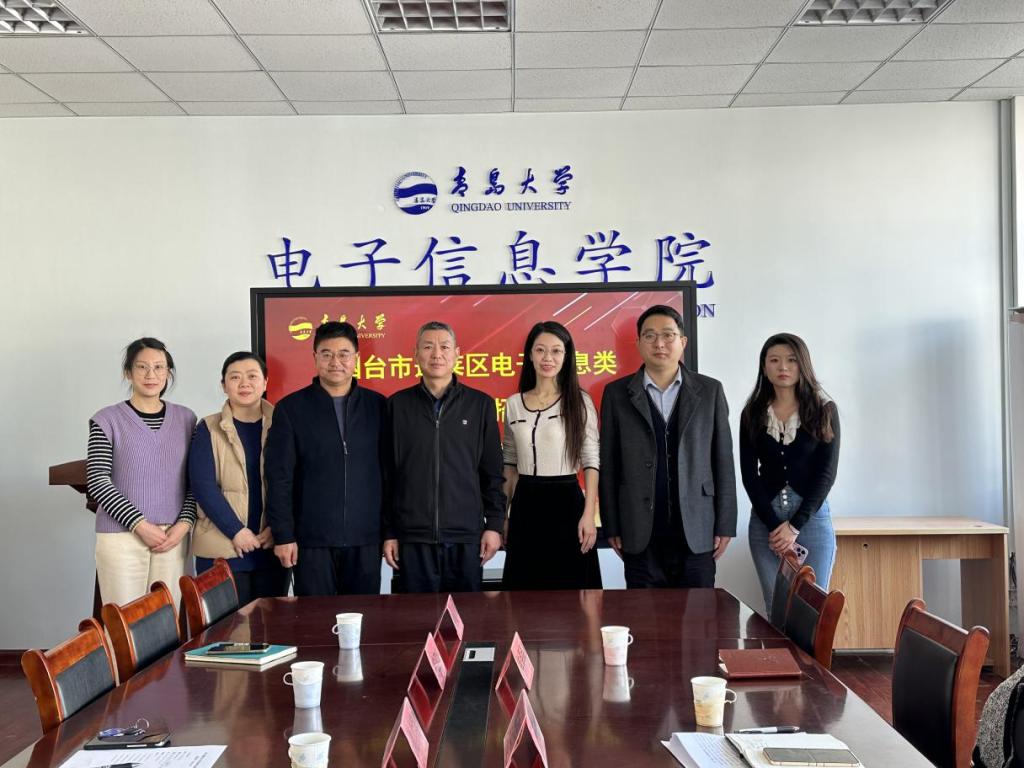 劉孝群代表學院對煙臺市蓬萊區來我院舉辦電子信息類畢業生專場招聘會表示感謝。他向客人簡要介紹了學院近年來學科發展和人才培養基本情況,并結合學院專業課程設置論證了院地雙方開展合作的可行性。