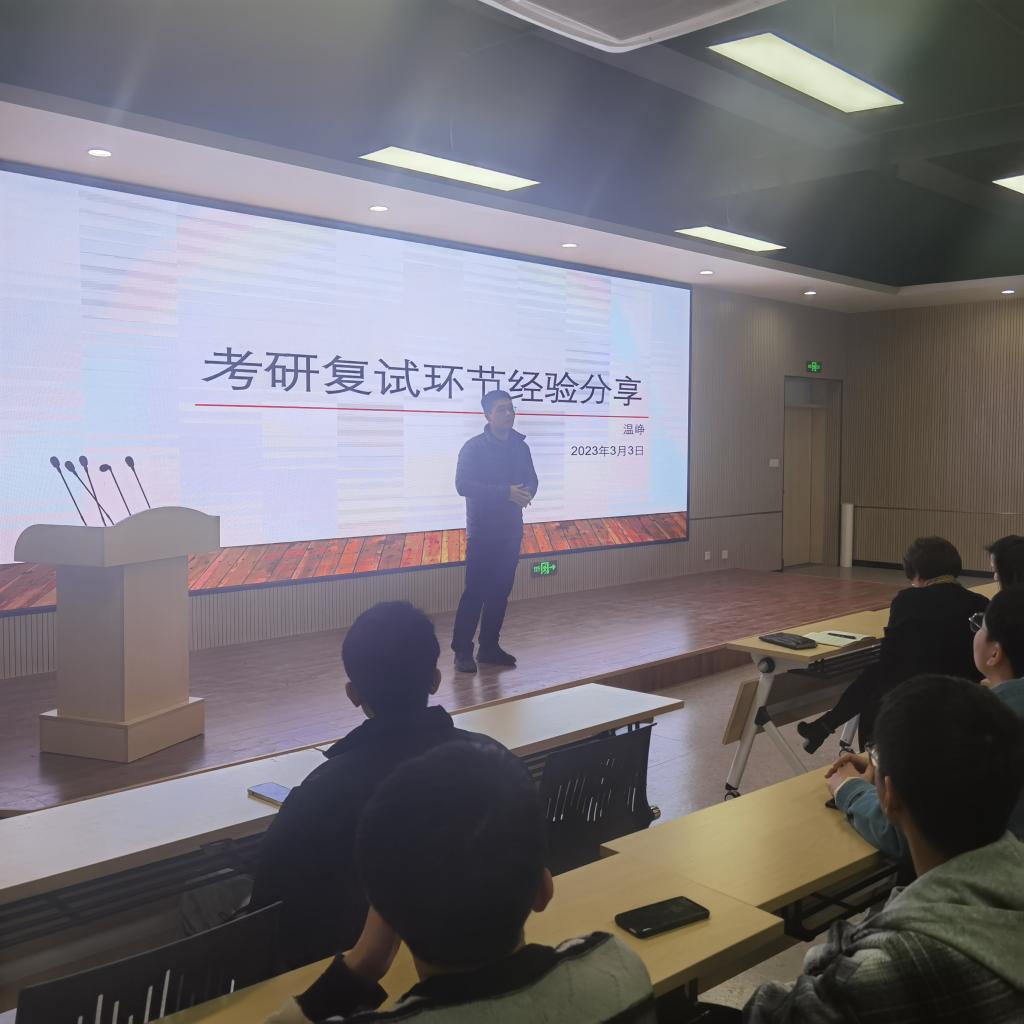 3月3日,我院在泓園科創文化中心二樓多功能廳舉辦了2023屆畢業生考研復試、調劑經驗分享交流會,學院各系主任和支部書記以及近200名考研畢業生出席分享會。分享會由溫崢教授主講,院黨委副書記劉孝群主持分享會。