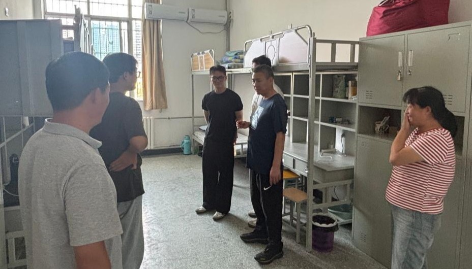 新生輔導(dǎo)員潘志奎、呂浩偉也走進(jìn)宿舍,細(xì)致詢問(wèn)同學(xué)們?cè)谶m應(yīng)校園生活過(guò)程中的困惑與期待,并解答大家對(duì)學(xué)業(yè)規(guī)劃的疑問(wèn)。同時(shí),他們耐心提醒新生注意用電安全、保持宿舍環(huán)境整潔。每一聲關(guān)懷、每一句囑咐,都在師生之間架起了溫暖的橋梁,拉近了心與心的距離。