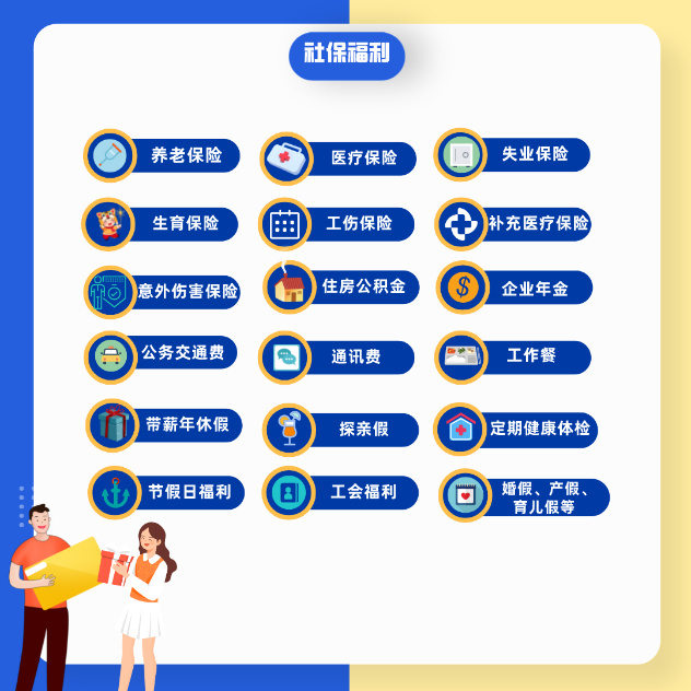 五險一金、補充醫療保險、帶薪年假、公司福利年假、節日禮物、家屬節日禮物、結婚禮物…...