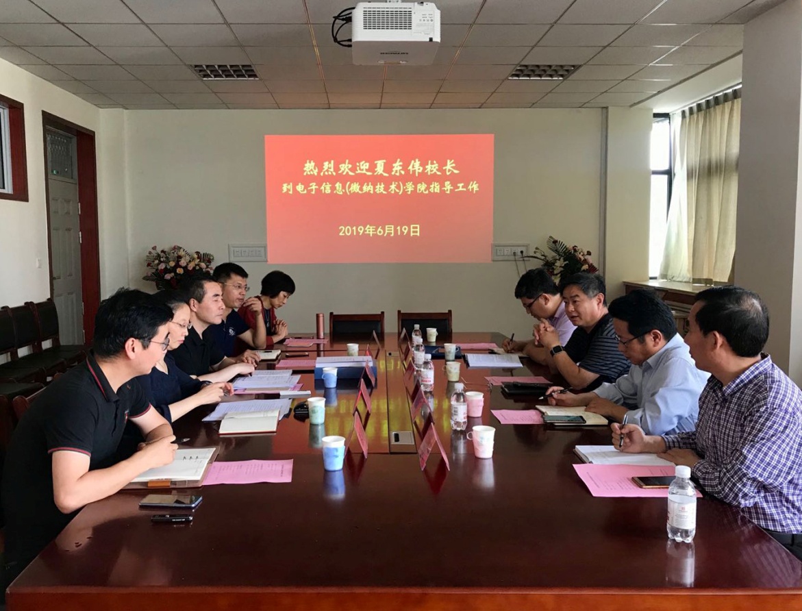 6月19日下午,校長夏東偉到電子信息(微納技術)學院調研學科建設、人才培養和重點項目進展等工作并召開座談會。教務處、研究生院、資產與實驗室管理處、學院領導班子成員及教師代表參加了座談會。
