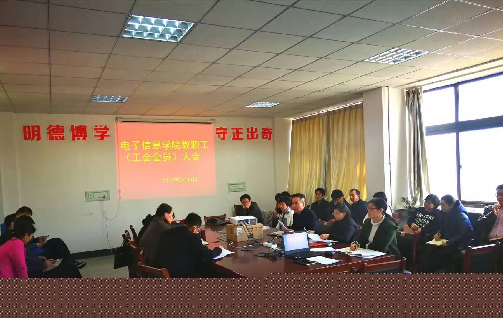 3月13日下午,電子信息學院在誠思樓407召開全院教職工(工會會員)大會。黨委書記苗洪麗主持會議。