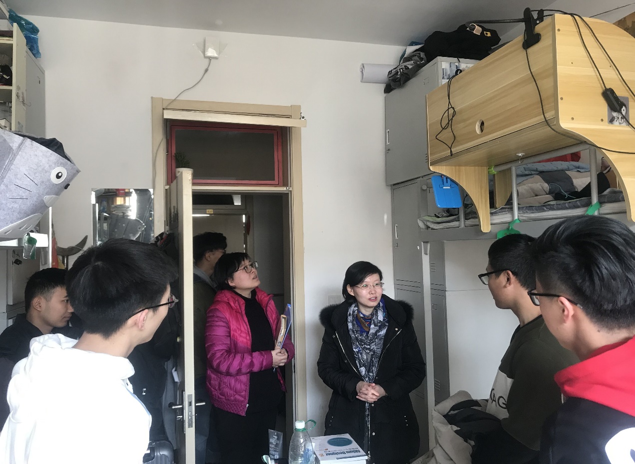 2月24日,學院黨委書記苗洪麗、院長遲宗濤、副院長單福凱、院長助理宿杰和蔡恩林以及3位輔導員,分別走訪了4個年級的男生宿舍,了解新學期學生的思想動態,對宿舍衛生、安全、文化建設等方面深入了解,提出了相關要求,并對畢業年級同學們的考研就業進行了親切詢問交流,提出了指導性建議,寄予美好祝愿。