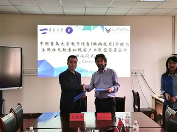 10月21日下午,法國拉瓦勒虛擬現實產業聯盟總經理勞倫(Laurent Chrétien)先生、法國拉瓦勒市政府及拉瓦勒虛擬現實產業聯盟亞洲區首席代表姚丹紅女士,到訪電子信息(微納技術)學院,雙方圍繞建虛擬現實(青島)國際聯合實驗室進行會談交流,院長遲宗濤參加并主持會議。