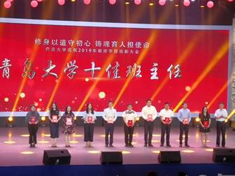 “修身以道守初心,鑄魂育人擔使命”。9月10日下午,我校慶祝2019年教師節(jié)暨表彰大會在劇院隆重舉行。學院黨委書記苗洪麗、院長遲宗濤、教師代表和學生代表參加了此次表彰活動。我院宿杰、鄭宇、謝萬峰三名教師分別獲學校最美教師、優(yōu)秀教師和十佳班主任優(yōu)秀稱號并獲學校表彰。這是學校對三名杰出教師工作的肯定,也是對學院教育教學工作的肯定。