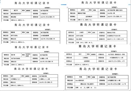 2020年2月底至3月上旬,學院領導班子成員、系主任、副主任、黨支部書記組成13人聽課調研團,開展為期一周的在線教學檢查活動,共計聽課總數24門次。聽課調研團成員通過雨課堂、騰訊課堂、騰訊會議、釘釘等平臺進入在線課堂,與同學們一起聽課,并就教師在線教學的內容、教學環節的完整性、課堂節奏、教學資源的應用、教學軟件的應用、學生參與度、師生互動情況等進行檢查。課后,每位調研團成員與授課教師和同學進行交流溝通,同時提交了聽課記錄。