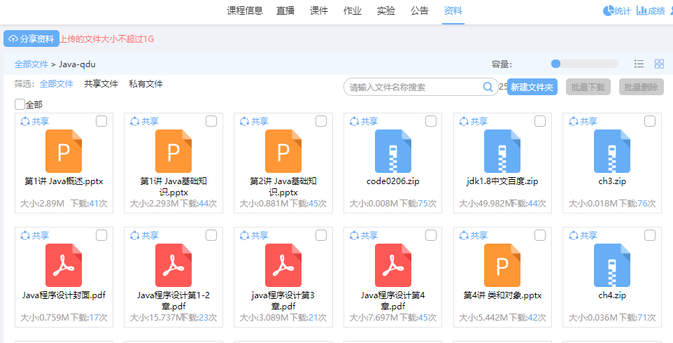 雖然Java程序設計這門課不是新課,但是賀英老師為了更直觀、立體的網上授課效果,從觀看優秀在線課程中學習教學方法,例如學堂在線中清華大學鄭莉老師、愛課程中重慶大學朱慶生老師的Java程序設計課程。她虛心學習,仔細揣摩,重新組織了課件內容,加入了有趣的案例,豐富了知識點總結對比。在青軟實訓免費提供的“U+新工科智慧云”平臺上建設了自己的網課,將課件、資料、程序代碼都上傳到平臺。由于選用的教材在網上許多平臺中都沒有找到電子圖書,賀老師親自用手機拍照、掃描,把400多頁的教材整理成多個章節的PDF文件,發送給學生學習。