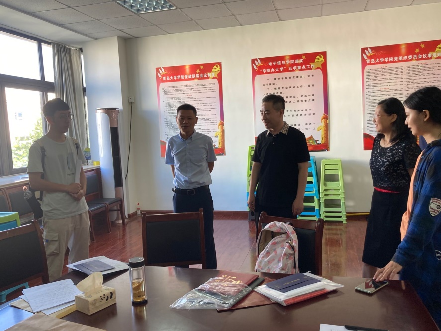 在現場,書記、院長一行與新生們進行了親切的談話,詢問了新生報到情況,表達了對新生未來學習生活上的關心并寄以厚望,勉勵他們要珍惜在校的時光,心懷更高遠的理想,奮斗燃燒自己的青春,讓青島大學成為自己實現夢想的港灣和新起點。