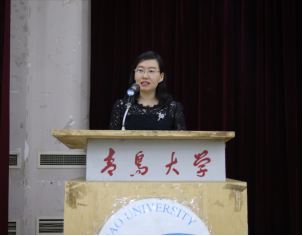 教師代表遲潔茹與新生親切交流,希望同學們盡快適應大學環境,實現角色的轉換,能夠獨立自主,自我約束。