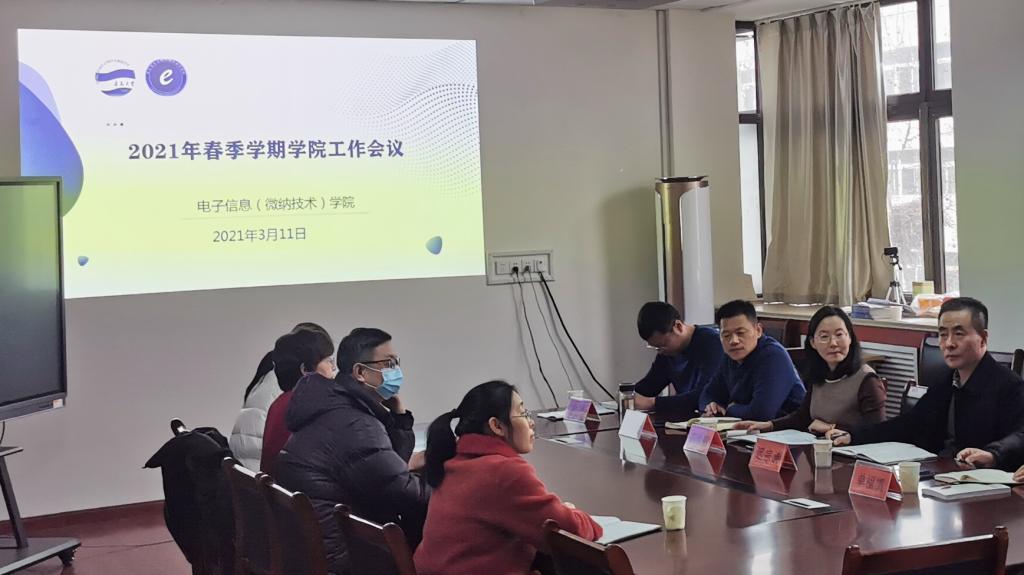 3月11日下午,電子信息(微納技術(shù))學(xué)院在誠思樓407會(huì)議室召開2021年春季學(xué)期全體教職工會(huì)議。學(xué)院黨委書記苗洪麗、院長遲宗濤、副書記李政、副院長單福凱、宿杰、院長助理雷博出席會(huì)議。