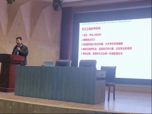 宿杰副院長從考研動機、考研形勢、志愿的選擇等方面進行了詳細的講解,幫助同學們樹立正確的考研觀,以“選擇比努力重要,專業比學校重要”指導同學進行學校專業的選擇,同時提醒大家做好吃苦的準備,調整好心態,合理作息有序安排復習計劃,積極備考,定會夢想成真。