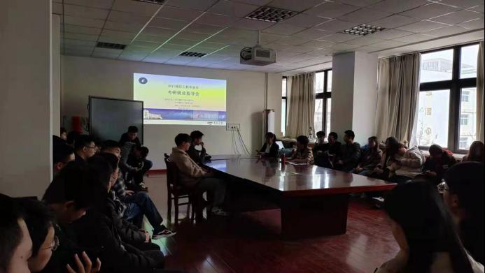3月18日下午,2017級通信工程畢業生考研就業指導會在我院誠思樓407順利召開,參會人員有:2017級通信工程全體學生,通信工程系系主任和通信工程系黨支部書記。