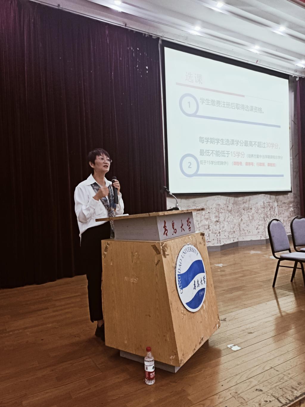 教科辦主任科員袁淑萍針對學分制管理給新生做了詳細的解讀,介紹了學分制概念、主要內容,專業培養方案,學籍管理,選課、重修、免修、輔修專業,課程考核及其中補考、緩考、曠考,以及畢業、結業、肄業的相關內容,使新生對學分制管理有了更深刻的了解。