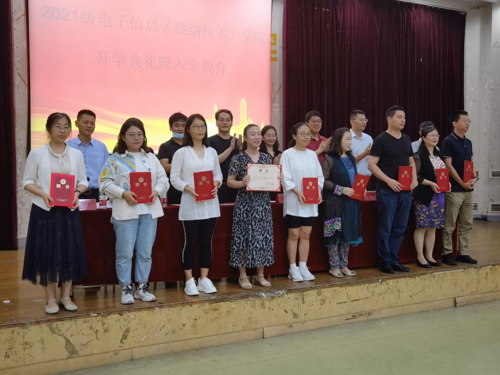 副院長單福凱宣讀了《電子信息(微納技術)學院聘請2021級新生班主任的決定》,并由院領導為各班班主任頒發聘書。
