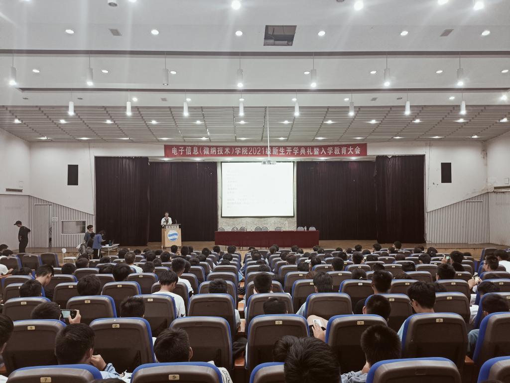 9月25日上午,電子信息(微納技術)學院2021級新生開學典禮暨入學教育大會在金家嶺校區圖文中心四樓報告廳隆重舉行,我院黨政領導班子成員、系負責人、班主任、新生輔導員、教師代表及學生代表出席了會議,我院2021級全體新生參加了典禮。會議由黨委副書記李政主持。