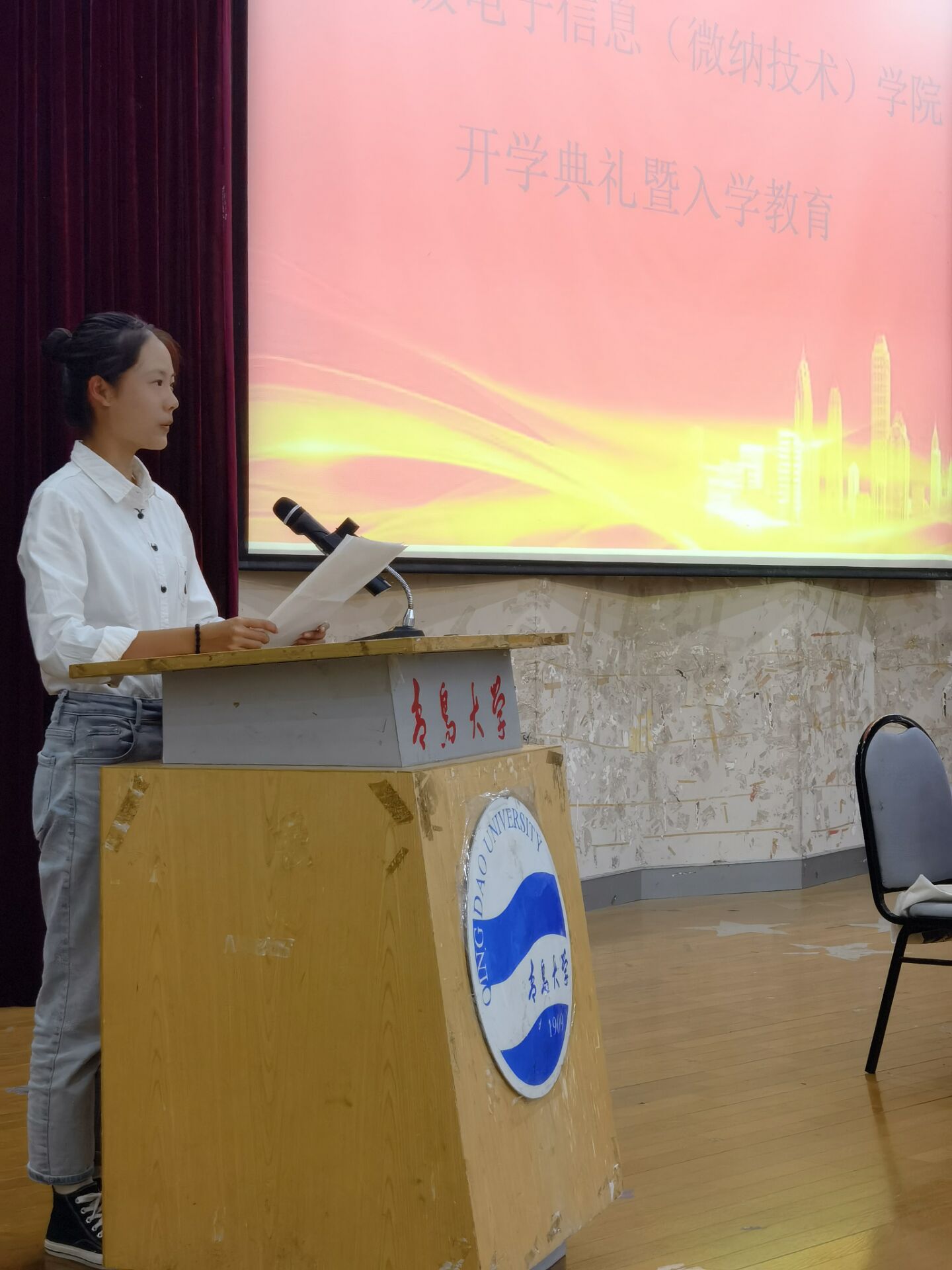 新生代表宋自如上臺發言,向全院領導、老師和同學獻上誠摯的祝福,并向新生倡議:積極展現自己,提升綜合素質,珍惜時間,事必躬親,挺起中國脊梁,一展青年鴻圖。
