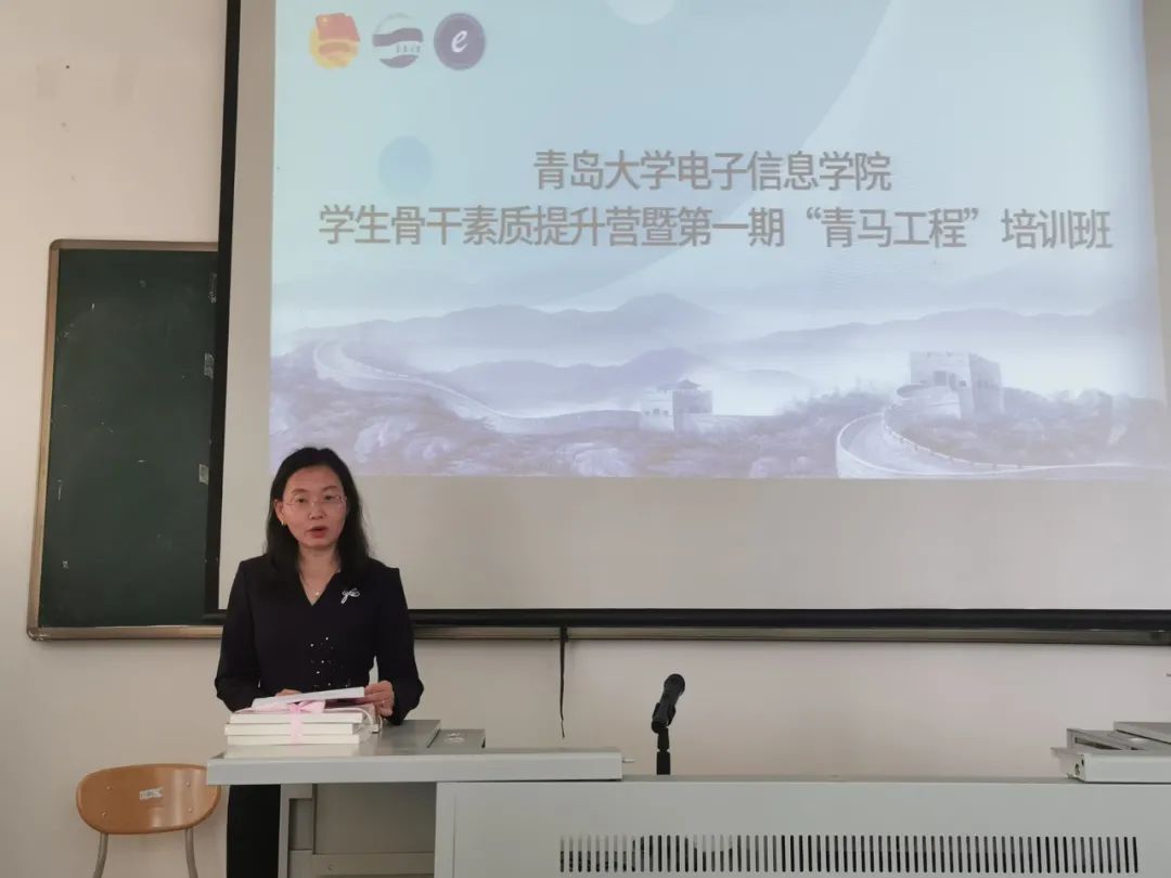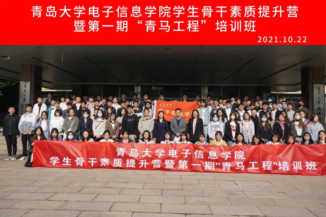 10月22日,青島大學電子信息學院學生骨干素質提升營暨第一期“青馬工程”培訓班開班儀式在青島大學浮山校區睿思樓604會議室舉行。校團委書記馬林剛、院黨委書記苗洪麗、黨委副書記李政、院團委書記華梁、2019級輔導員趙曉輝、2020級輔導員牟凱悅、2021級輔導員潘志奎以及第一期“青馬工程”全體學員參加儀式。