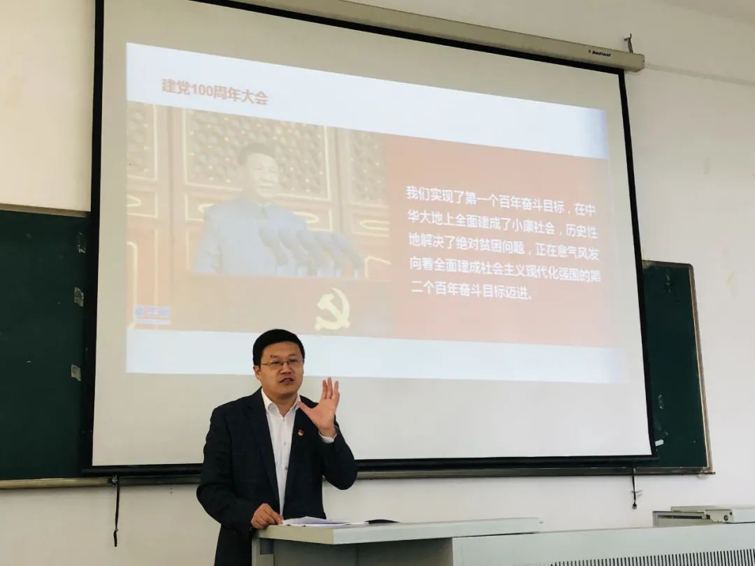 儀式上,馬林剛為學員講述了主題為《請黨放心 強國有我》的主題團課,他以習近平總書記“七一”重要講話精神為核心,向同學們介紹了中國共產黨從初成立時的篳路藍縷,到不斷發展壯大時面對的無數艱辛和艱苦奮斗,再到新時代中國共產黨不忘初心,不負時代和人民賦予的歷史使命。他結合個人的生活和工作經驗,用自己對于中國發展和中國共產黨堅強意志的深刻理解,帶領同學們對“七一”建黨精神的深入解讀。最后,他號召在座的同學們要以實現中華民族偉大復興為己任,增強做中國人的志氣、骨氣、底氣,不負時代,不負韶華,不負黨和人民的殷切期望!