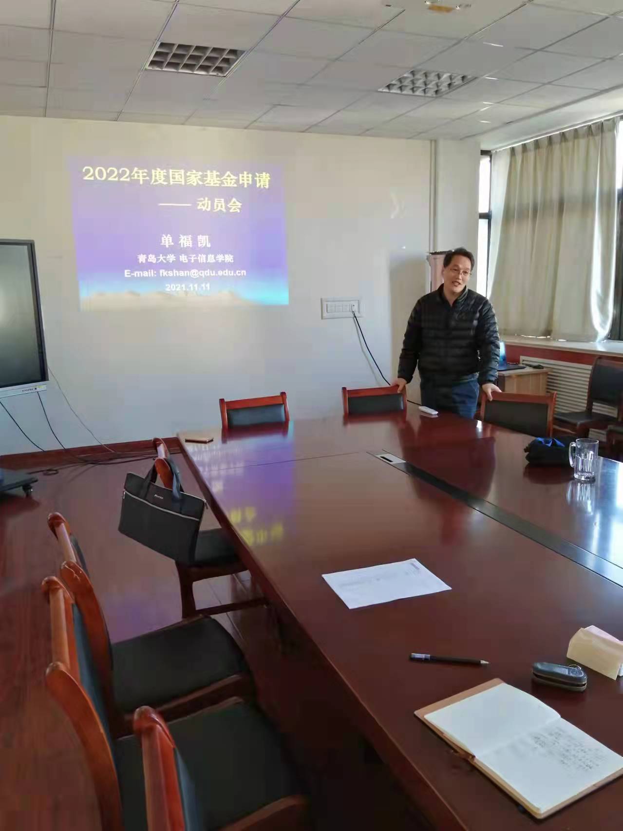 11月11日下午,我院在誠思樓407學院會議室召開電子信息學院2022年國家自然科學基金申報動員會議,院長李山東主持會議,副院長單福凱,院長助理蔡恩林及學院全體教師參加會議。