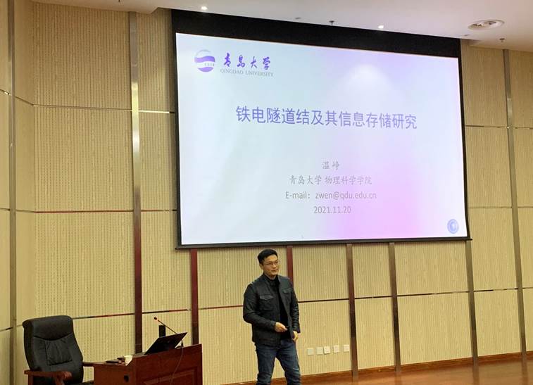 溫崢教授,博士生導師,青島大學物理科學學院應用物理系主任,長期從事電介質材料及相關功能薄膜與器件的科研、教學工作,中國儀表功能材料學會電子元器件關鍵材料與技術專業委員會常務委員,主要研究工作包括鐵電隧道結的高性能、多功能信息存儲,外延異質結構中撓曲電極化與應用,CMOS兼容的HfO2基信息存儲器件等。溫崢教授報告了鐵電隧道結的發展,重點講解了基于金屬/鐵電體/半導體隧道結的能帶結構、高電流開關比值等特性,從實際應用角度出發,探索和揭示了鐵電隧道結阻變疲勞的物理機制,并展望了鐵電隧穿存儲結構的新發展。