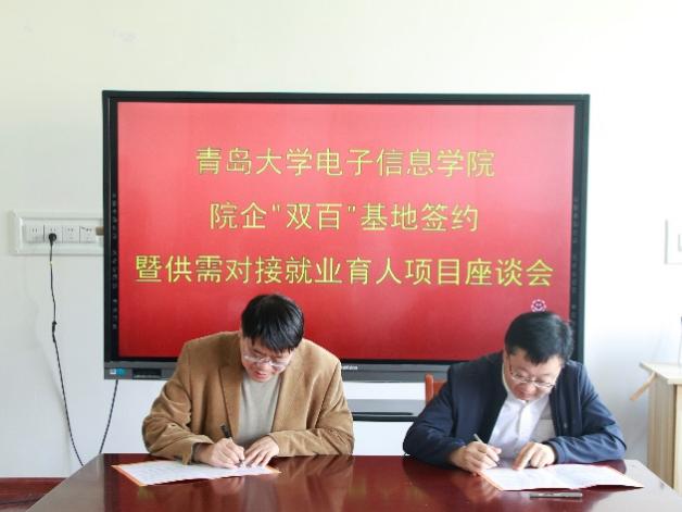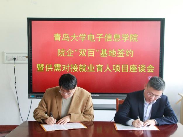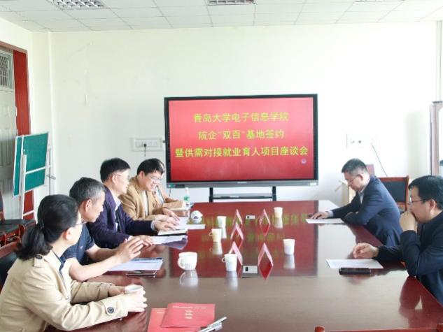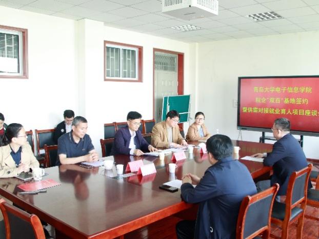 5月12日,電子信息學院與青島鼎信通訊股份有限公司、雷沃工程機械集團有限公司開展院企“雙百”基地簽約暨供需對接就業育人項目座談會。青島鼎信通訊股份有限公司副總裁趙磊、雷沃工程機械集團有限公司管理工程部部長李德慶、電子信息學院黨委書記張啟春、院長李山東、黨委副書記劉孝群、各專業負責人、輔導員、學生代表參加了座談會。