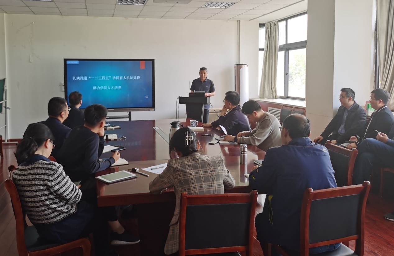 黨委副書記劉孝群作題為《扎實推進“一二三四五”協同育人機制建設 助力學院人才培養》的報告。他指出,聚焦立德樹人根本任務,抓好知識教育和人格教育,推進“三全”、“四溫”、 “五成”協同育人體系建設。通過課程育人、科研育人、實踐育人、文化育人、網絡育人、心理育人、管理育人、服務育人、資助育人和組織育人“十大育人工程”,助力學院人才培養;通過畢業生升學率、就業率、大學生創新創業及科技競賽、學生身心健康(安全穩定)四個方面聚焦核心目標任務,助力學院事業發展。