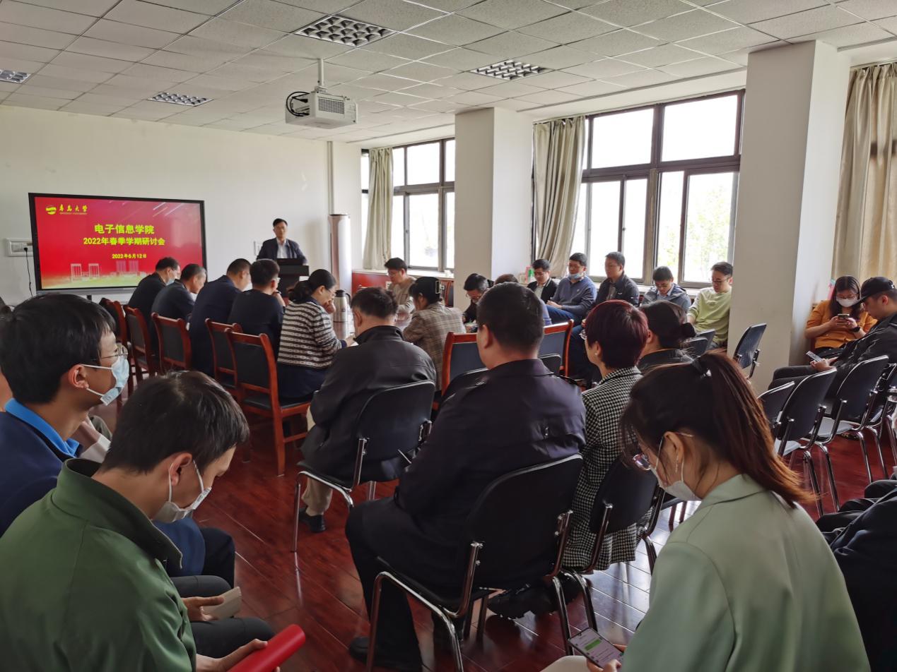 5月12日下午,電子信息學院在誠思樓407會議室召開以“凝心聚力 奮發有為 推動學院高質量內涵式發展”為主題的春季學期工作研討會,學院黨政班子成員結合學院發展目標、年度指標任務和各自工作分工向全院教師作研討報告,對標對表,分析問題差距,謀劃重點任務,明確路徑舉措,推進工作落實。會議由黨委書記張啟春主持,全院教職工參加研討。