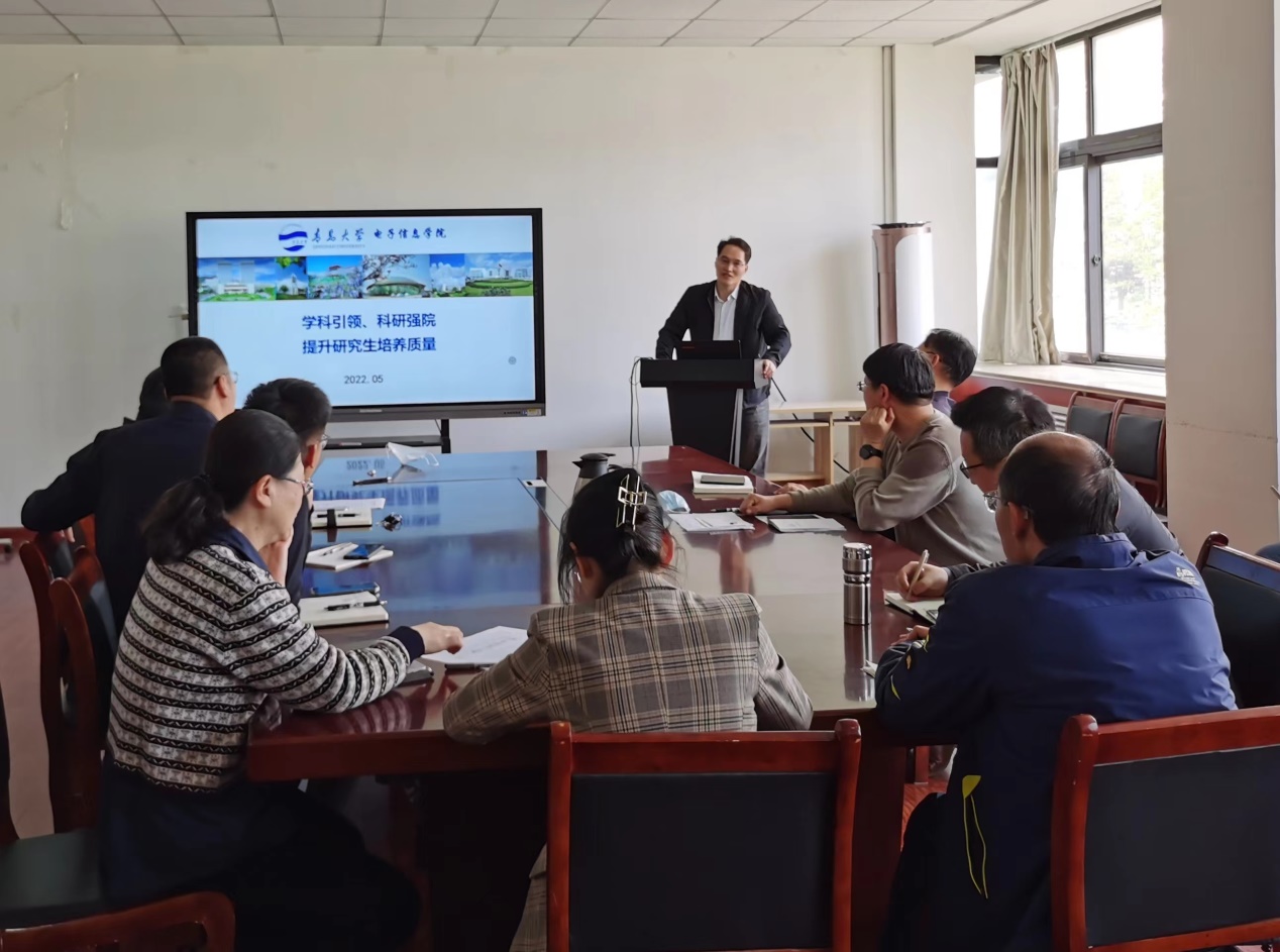 副院長單福凱作題為《學科引領 科研強院 提升研究生教育質量》的報告。他結合學科發展現狀,深刻剖析學科存在項目立項數嚴重偏少、發表 SCI 論文嚴重偏少、科研經費數不足、學院學術氛圍不夠濃厚等問題和短板,提出要人才興院和科研強院,制定合適的科研績效津貼分配方法,規范研究生培養機制建設等,更好地激發師生科研活力,提升研究生培養質量。