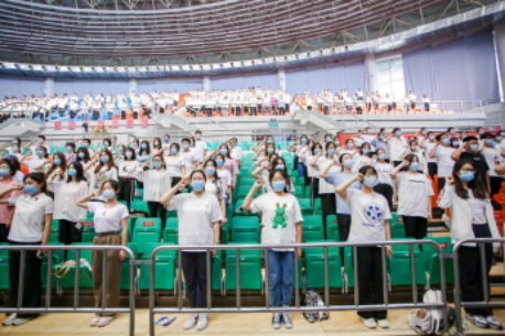 9月18日上午,青島大學2022級本科生開學典禮在浮山校區體育館舉行。典禮開始,場地內奏響國歌,全場肅立,堅定心中理想,傳承先輩旗幟。