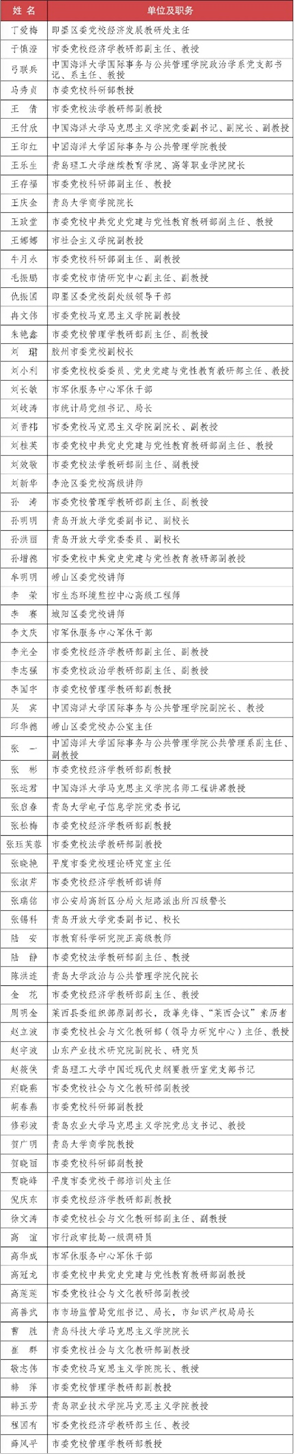 青島市干部教育優(yōu)秀師資庫(kù)目錄(后附圖片)