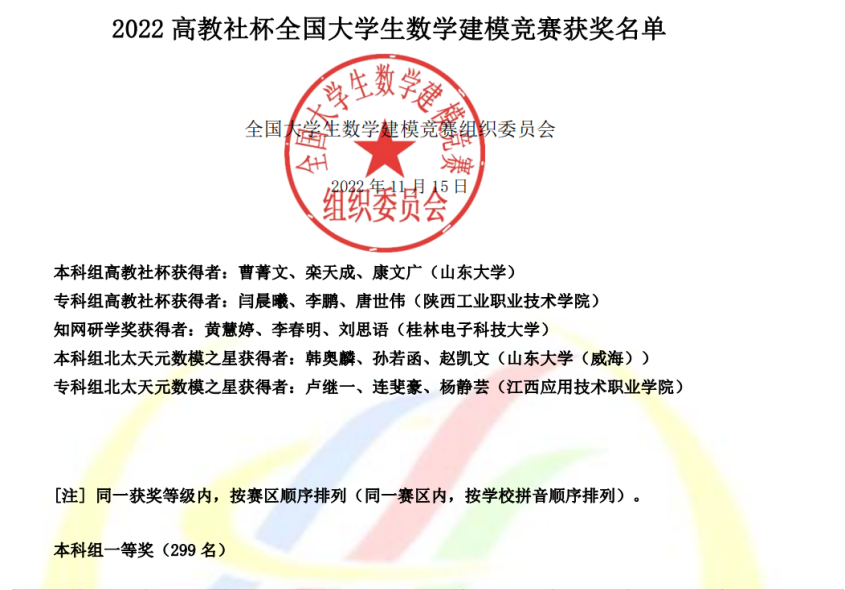 圖:2022高教社杯全國大學(xué)生數(shù)學(xué)建模競賽獲獎文件公示