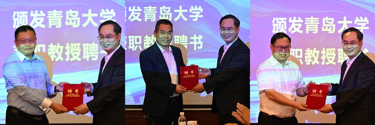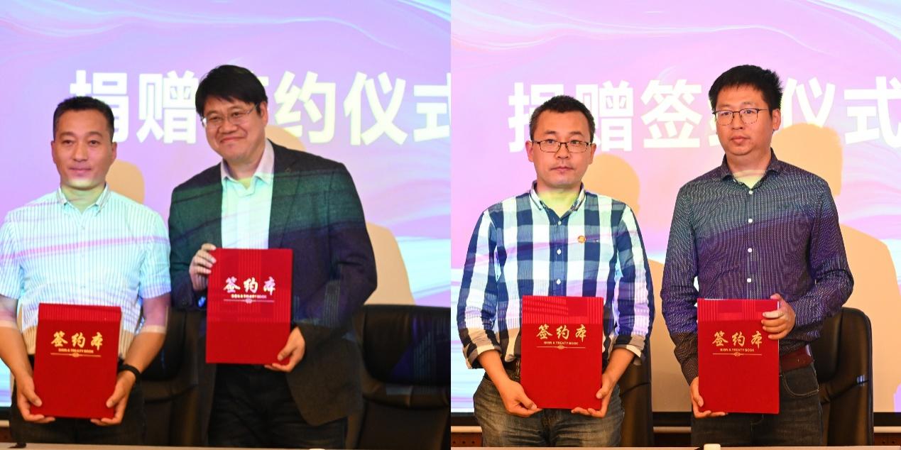 開幕式上,李軍為張文栓、程一峰、楊列勇三位業(yè)界專家頒發(fā)青島大學兼職教授聘書,為戴衍華、黃傳東、趙龍、馬玉水頒發(fā)青島大學創(chuàng)新創(chuàng)業(yè)導師聘書。李山東與96屆校友山東聯(lián)盛電子設備有限公司總經理馬玉水簽署集成電路教研設備捐贈協(xié)議,于騰院長助理與98屆校友高明輝簽署“信芯”勵學基金捐贈協(xié)議。