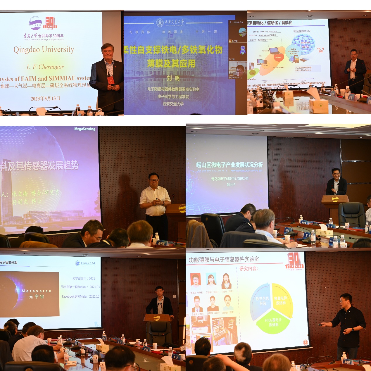 開幕式后,舉辦了電子信息學院“創(chuàng)新發(fā)展”論壇,李山東主持論壇活動。外聘院士、烏克蘭功勛科學家萊昂尼德·切爾諾高爾作題為《地球—大氣層—電離層—磁層全系統(tǒng)物理現(xiàn)象》的報告,國家人才計劃特聘教授、西安交通大學教授劉明作題為《自支撐柔性鐵電/磁電薄膜及器件應用》的線上報告,物元半導體首席科學家楊列勇作題為《集成電路技術發(fā)展趨勢》的報告,原青島協(xié)同創(chuàng)新研究院副院長張文栓作題為《氮化鎵材料及其傳感器的發(fā)展趨勢》的報告,青島微電子創(chuàng)新中心總經理戴衍華作題為《嶗山區(qū)微電子產業(yè)發(fā)展狀況分析》的報告,南京信息工程大學教授、2005屆校友董云泉作題為《面向實時感知的高時效通信》的報告,山東省杰青、泰山學者青年專家溫崢作題為《新一代量子機制鐵電信息存儲器研究》的報告。(臧敏)