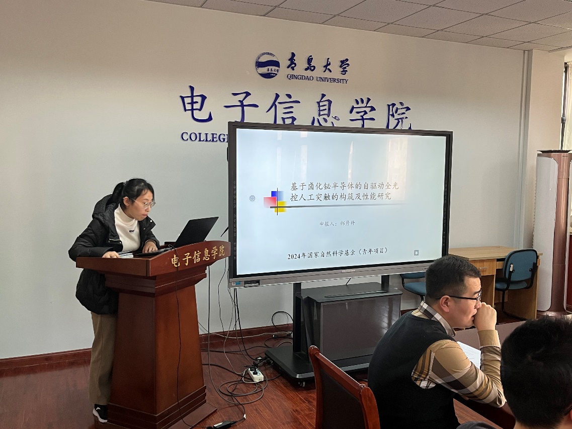 郝丹丹博士講述了基于鹵化鉍半導體的自驅動全光人工突觸的構筑與性能研究,總結了之前申請青年基金的反饋意見,對基金申請進行的修改向各位老師進行了介紹。郝博士根據光電突觸器件的應用場景,提出基于鹵化物制備的光電器件的優勢和鹵化鉍半導體的構筑和性能研究。同時說明了人工突觸器件的技術路線,主要是對設計的工作機理和制備過程進行研究。