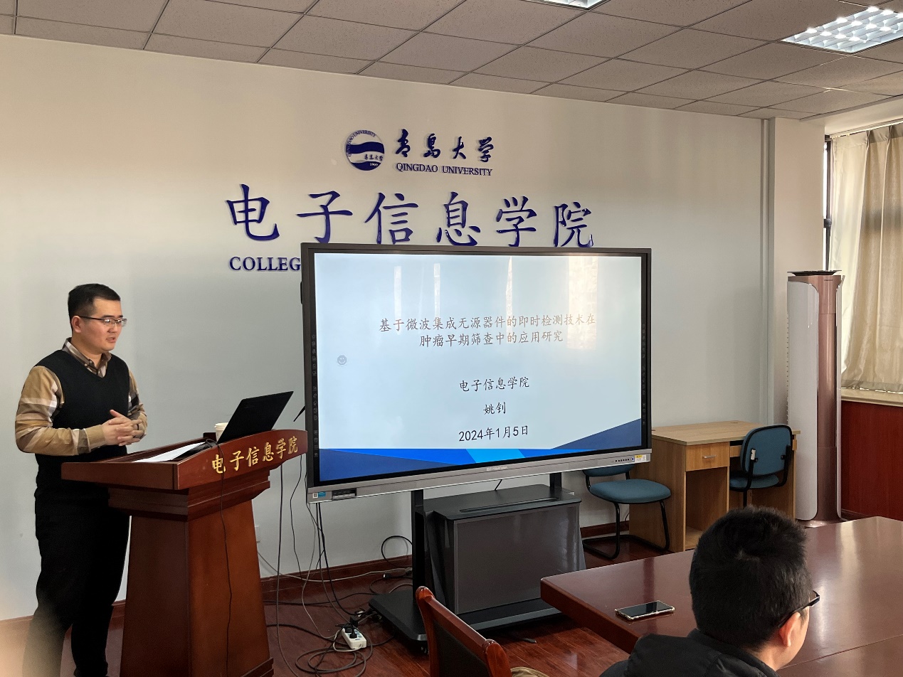 姚釗博士分享了自己的研究方向,主要介紹了利用微波生物傳感器探測腫瘤細胞分泌物的原理、高性能傳感器的設計和該傳感器的優勢。年夫順高工針對姚老師的匯報提出了國家基金申報的幾點建議:1.實驗需要定量分析和計算;2.國家基金需要理論依據和仿真驗證;3.判斷實驗的可行性,并提出實驗改進意見。李山東院長和溫崢教授提出了基金報告內容修改意見,強調了基金的科學性和創新性。