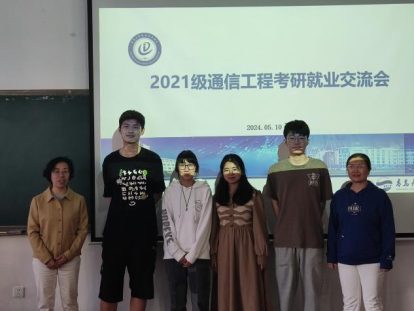 為了幫助2021級通信工程專業的學生更明確地了解考研和就業相關信息,在通信工程系主任李長紅的精心組織下,電子信息學院于5月10日在博知樓104教室開展2021級通信工程考研就業交流會。此次活動邀請了20級優秀學生——李曉蕊、丁寧、閆昭宇、吳宇宸,他們各自分享了寶貴的考研經驗和實用建議,為2021級全體通信工程專業同學提供了實質性的指導和啟發。