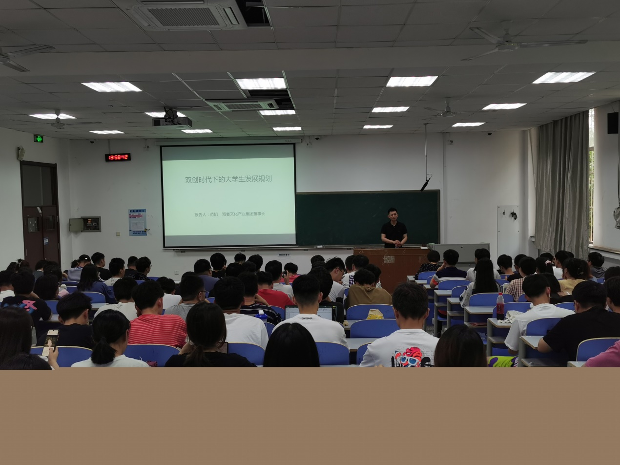 7月15日下午,電子信息學院通信工程專業2007級優秀校友——海宴文化產業集團董事長范旭受邀回校做創新創業報告。報告會在博知樓101教室舉辦,參會人數140余人。