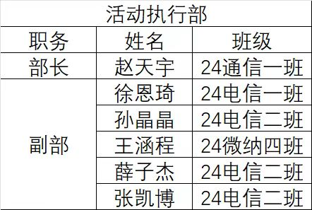 活動執行部是學生會重要組成部分,主要負責策劃實施校園活動、豐富校園生活及統計體測成績,涵蓋活動策劃、采購、報名選拔、現場布置、規則主持、獎品頒布、外部協調等工作。承辦草坪音樂節、迎新晚會、趣味運動會等項目,旨在豐富學生在校生活,彰顯學院精神。部門以“協同合作”“務實高效”為準則,注重培養成員溝通、預見與執行能力,秉持不言虛語、實事求是的宗旨,依托成員間緊密聯系的良好氛圍,追求每一次活動的完美呈現。
